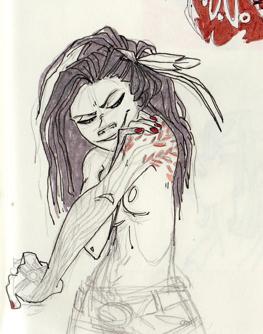 I've started to get into Paul Pope's work. I've got a couple of his comics that i need to start reading, but mostly i love the way he draws. It's really raw-looking inky brush lines, but he's got amazing control with it and knows how to throw in just the right amount of detail. So i've been playing with that, trying to get better with a brush pen. If nothing else it's a lot of fun... and is teaching me patience, waiting for ink to dry.